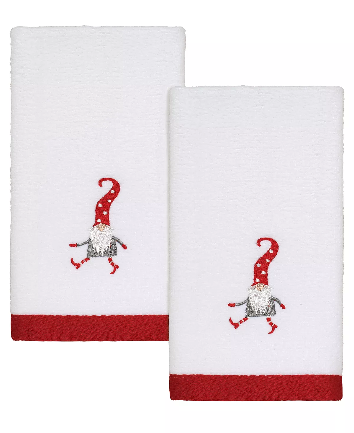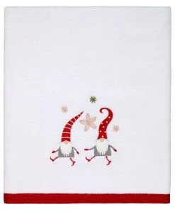 The Avanti Gnome Walk Decorative Bath Towel is embroidered with 2 adorable gnomes with a big, whimsical red hats and long white beards. The 100% cotton white towel has a contrasting red polyester border.