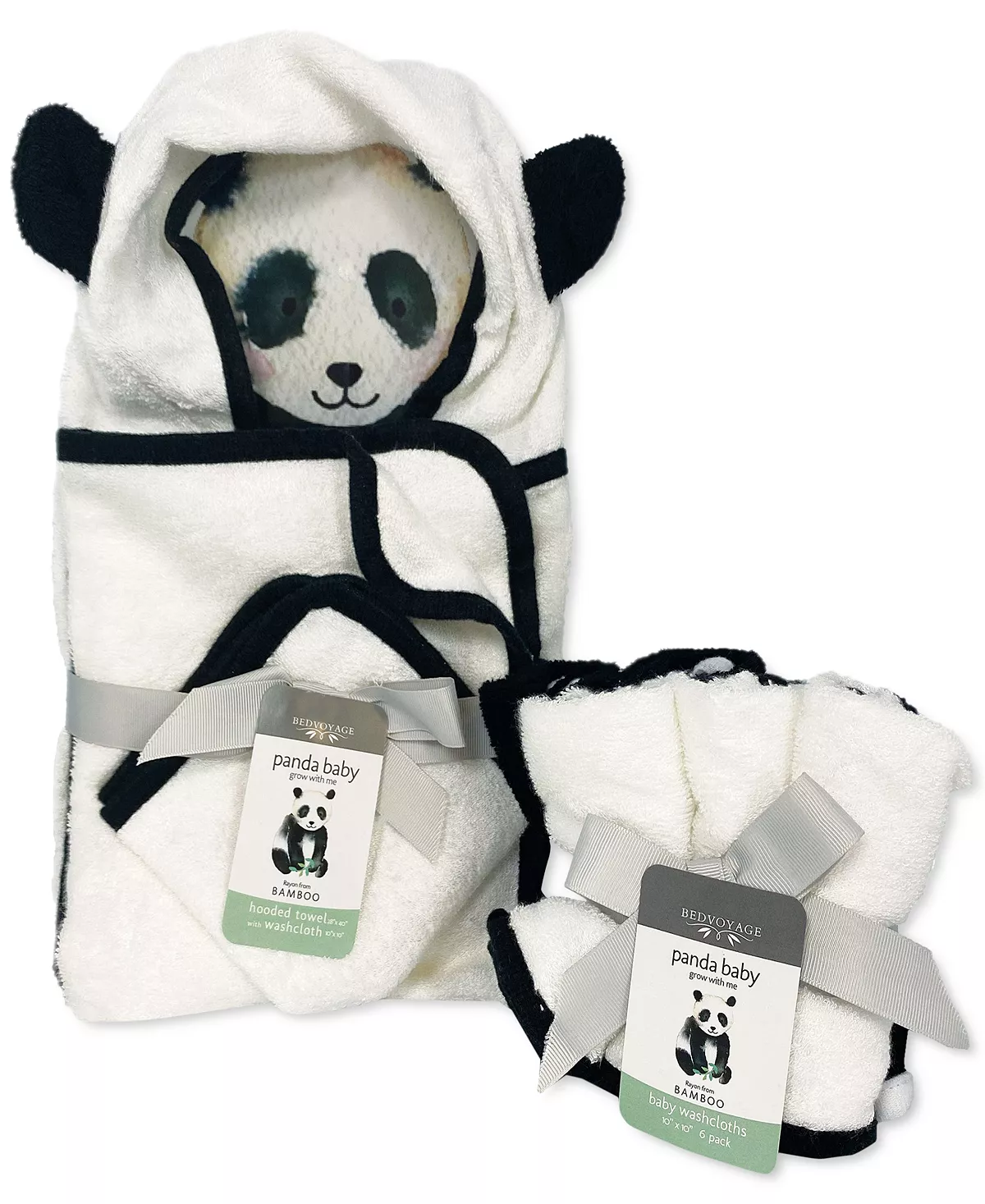 - Includes – 1 Hooded Towel (white with black piping), and 7 Rayon from Bamboo/cotton Baby Washcloth(4 white with black piping/3 black with white piping)