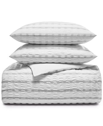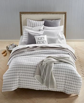Add luxurious comfort to your bedroom with the Damask Designs Seersucker duvet set from Charter Club, featuring the cozy textured feel of cotton seersucker and a classic striped design in white and gray tones.