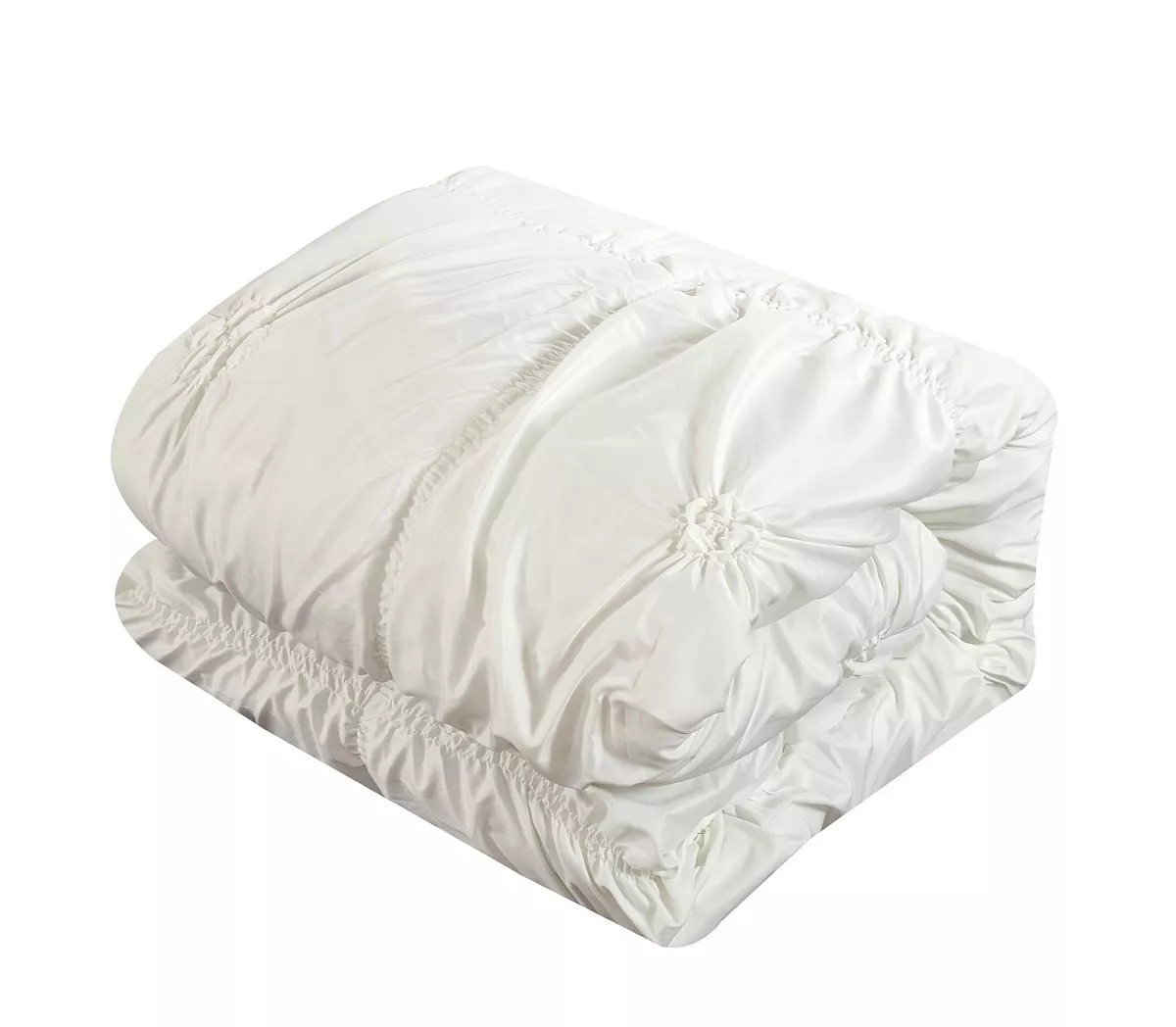 - The embellished floral pinch pleat and ruffled lookโwith coordinated shams and decorative pillow