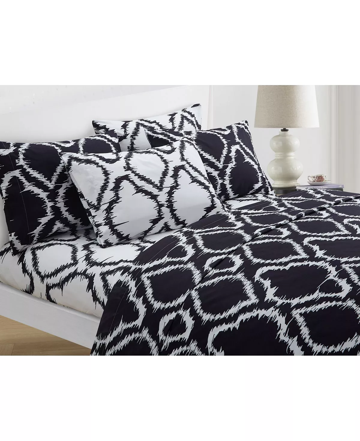 - The geometric Ikat medallion two-tone print pattern creates a unique contrast between the sheets