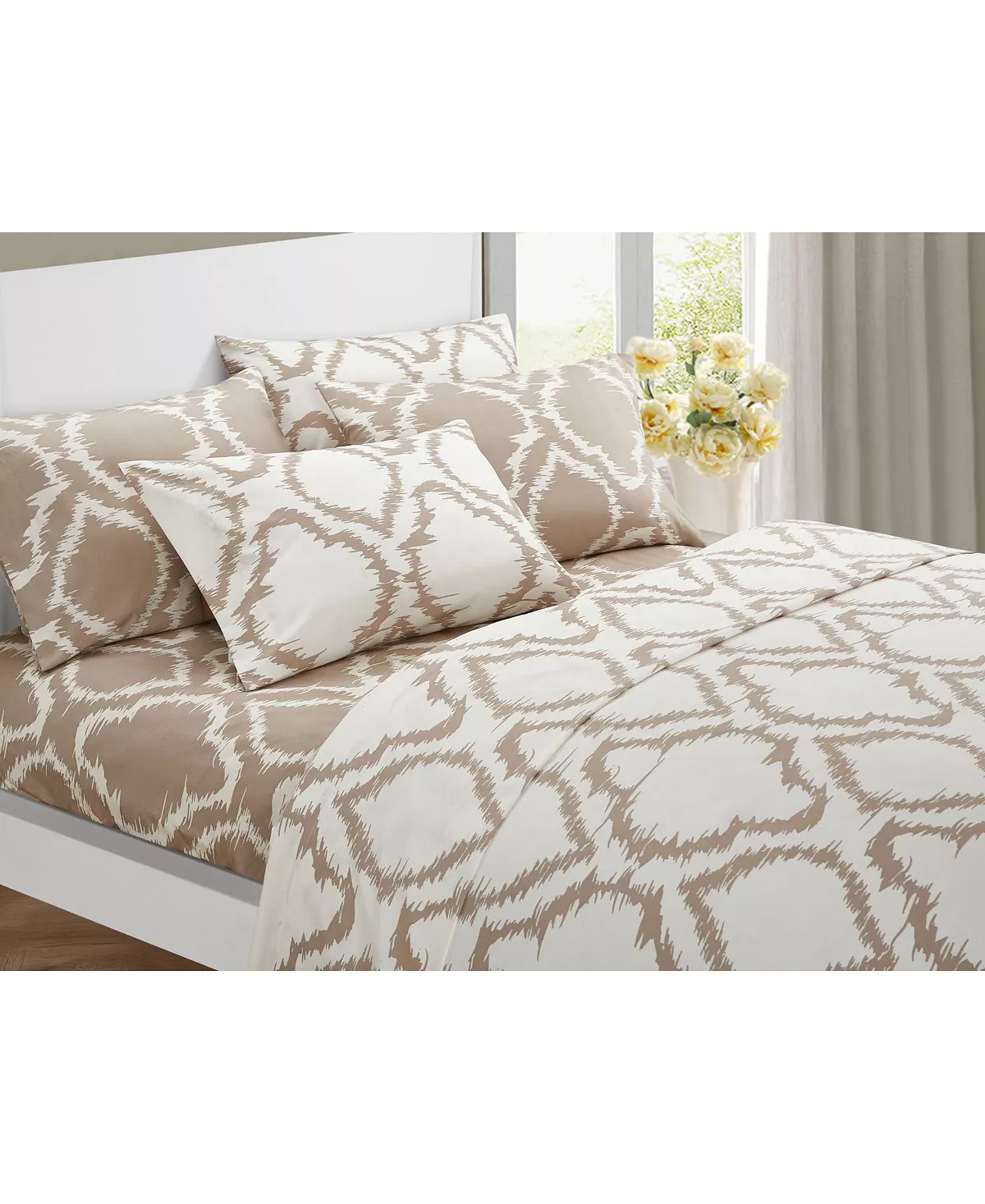 This contemporary super soft brushed microfiber deep pocket sheet set features a two-tone Ikat medallion pattern print. Design and color coordinated pillowcases are included to complete the look. This set is just what you need to redecorate your master, guest or even your dorm suite. Coordinate with other luxury Chic Home bedding products for a complete bedding dΓ©cor makeover.