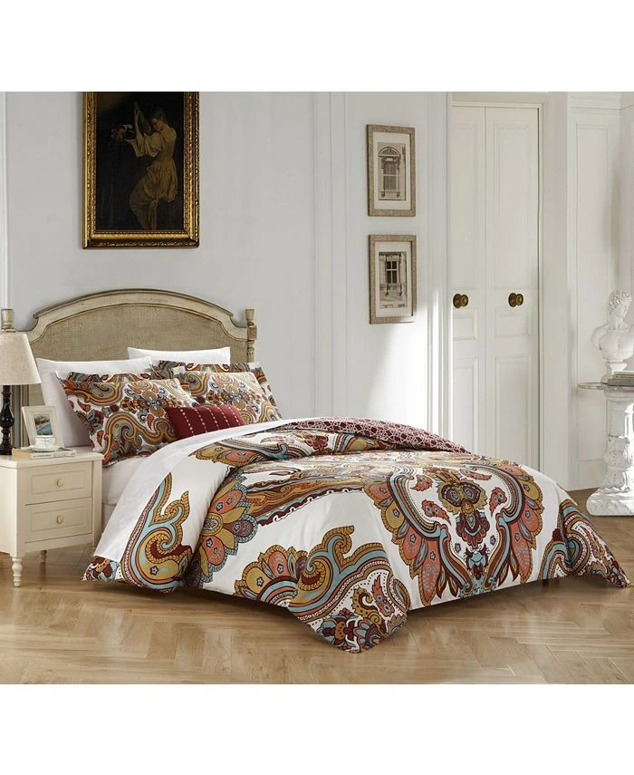 Create an artistic design oasis with this 100% Cotton 200 Thread Count large scale printing technique. Inspired from a global bohemian pattern which highlights color in an artistic format, detailed border creating a frame like appeal. This also reverses to a contemporary printed design to be able to switch your decor easily. Perfect for protecting your favorite down and down-alternative blanket, comforter, or quilt.