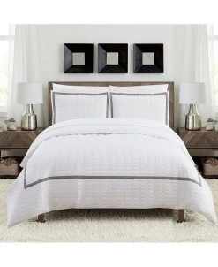 - Sophisticated and elegant two-tone banding design with coordinated pillow sham