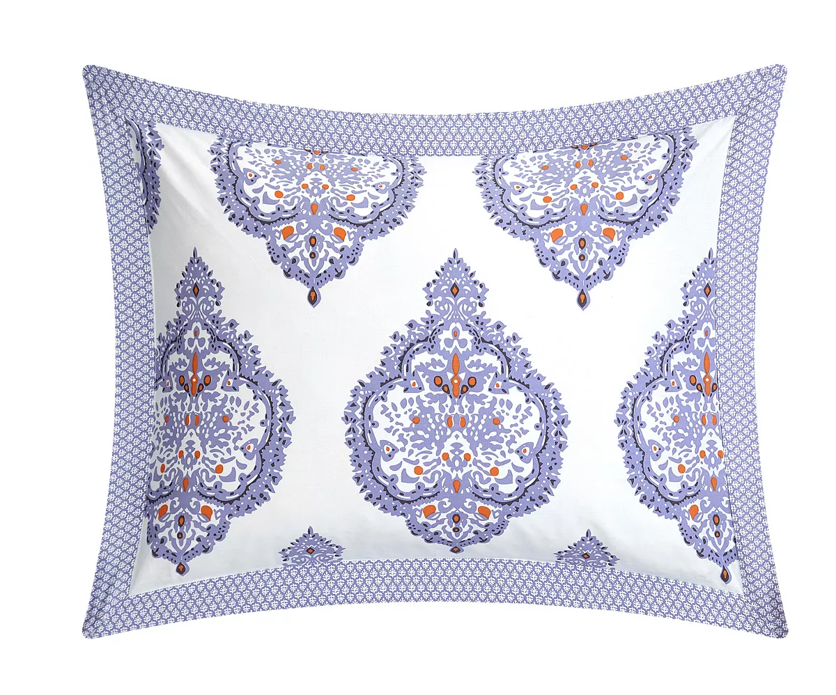 This duvet set globally inspired medallion pattern is the epitome of luxury bedding. Enjoy 2 looks for the price of one, this reversible bedding set features a modern two-tone peppercorn pattern on the reverse side. Stunning purple, magenta and tangerine tones and colors create a contemporary bedding dΓ©cor. Zipper closure for easy washing and care.