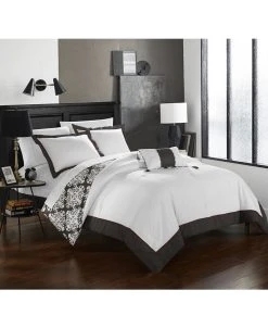 A fashion forward duvet cover set with everything you need for a complete bedroom décor makeover. Sophisticated and elegant duvet cover featuring a hotel collection design on the face and a large scale two tone medallion pattern on the reverse. Sheet set, design coordinated shams and a decorative pillow are included to complete the look.