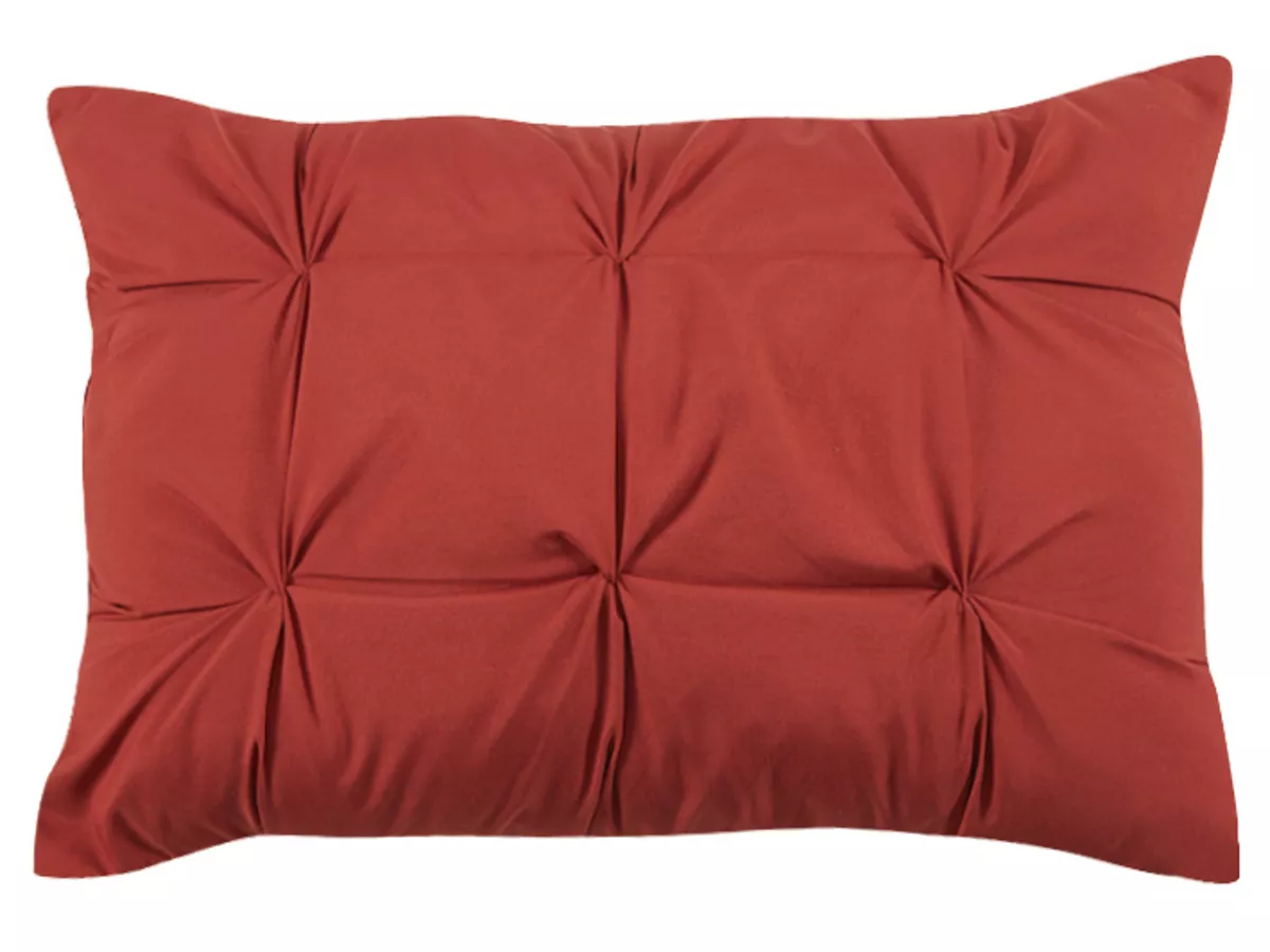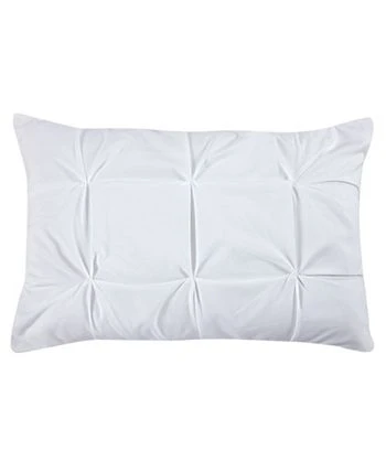- Geometric patterned print reverses to a classic pin tuck technique includes elephant embroidered decorative pillow