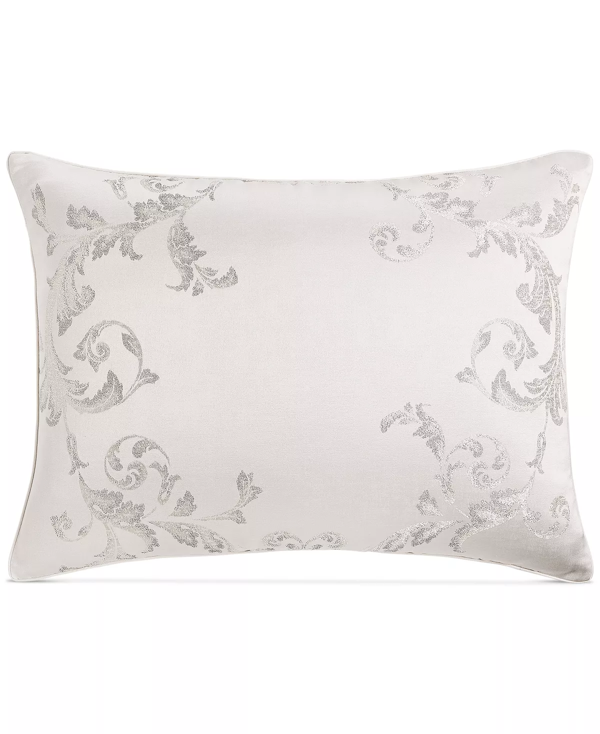 Frosted Scroll by Hotel Collection was inspired by glistening and shimmering snow, falling to create a beautiful snowscape. Grand scale scrolls with metallic hints weave through an expanse of soft textured ground on this gorgeous sham. Colored in tones of silvery white, this sham will surely complete your indoor winter wonderland.