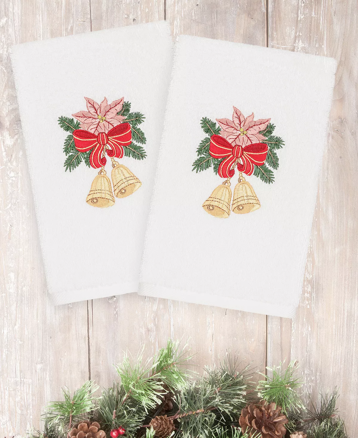 Bring a joyous Christmas spirit to your decorations with this elegant embroidered hand towels for your guest bath. These “Christmas Bells “towels feature a bouquet of golden bells, pine branches, & poinsettia graced by a red bow which will add a merry mood to your festivities! This special & luxurious Christmas towel is manufactured with more cotton per square inch for maximum softness and absorbency. Our products are produced in Linum’s state-of-the-art vertically integrated green factory in Turkey, which runs on 100% solar energy.