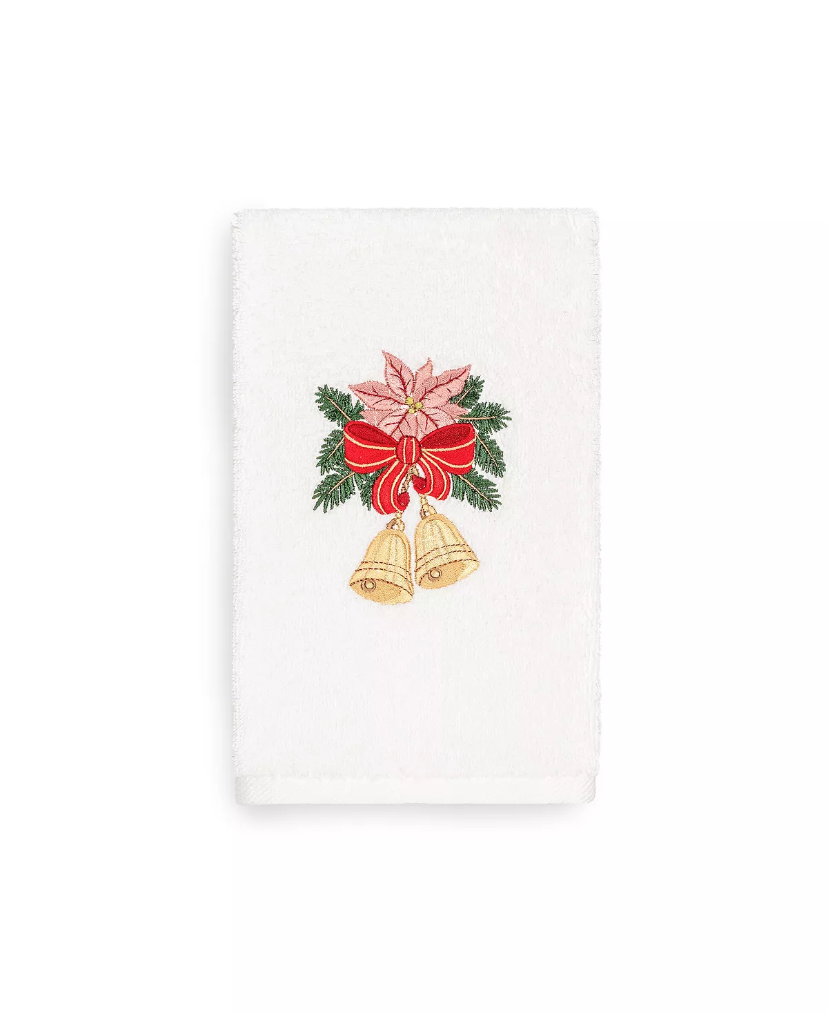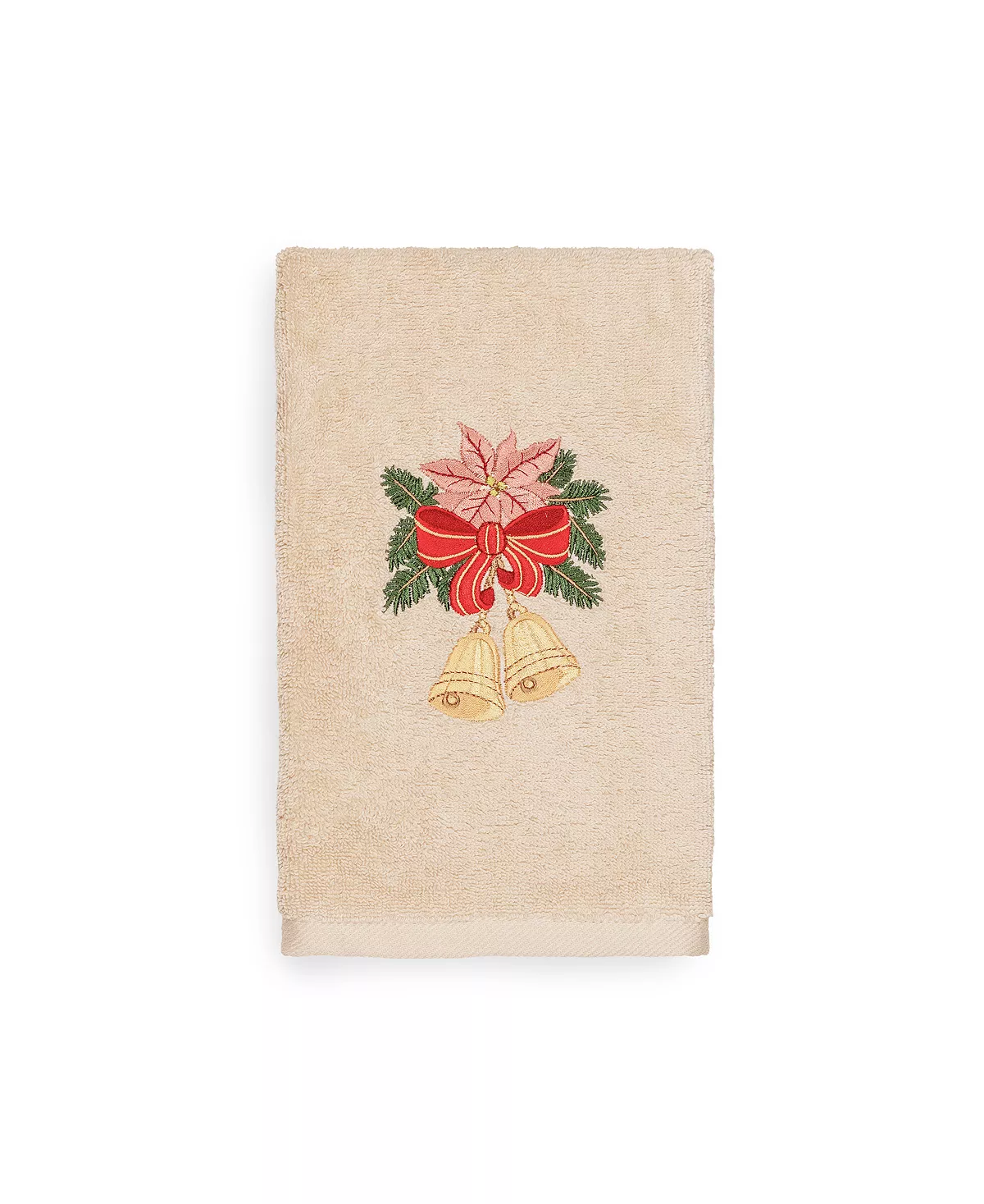Bring a joyous Christmas spirit to your decorations with this elegant embroidered hand towels for your guest bath. These “Christmas Bells “towels feature a bouquet of golden bells, pine branches, & poinsettia graced by a red bow which will add a merry mood to your festivities! This special & luxurious Christmas towel is manufactured with more cotton per square inch for maximum softness and absorbency. Our products are produced in Linum’s state-of-the-art vertically integrated green factory in Turkey, which runs on 100% solar energy.