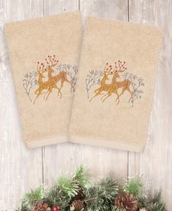 Bring a joyous Christmas spirit to your decorations with elegant embroidered hand towels for your guest bath. These “Christmas Wreath” towels feature a metallic patterned wreath decorated with a lustrous red bow, which will add a merry mood to your festivities.