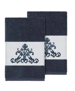 The SCARLET Embellished Towel Collection features an elegant scrolling crest motif on a textured woven border.These soft and luxurious towels offer lasting absorbency and superior durability.These lavish Turkish cotton towels are produced in Linum’s state-of-the-art vertically integrated green factory in Turkey.Set includes 2 Hand Towels.