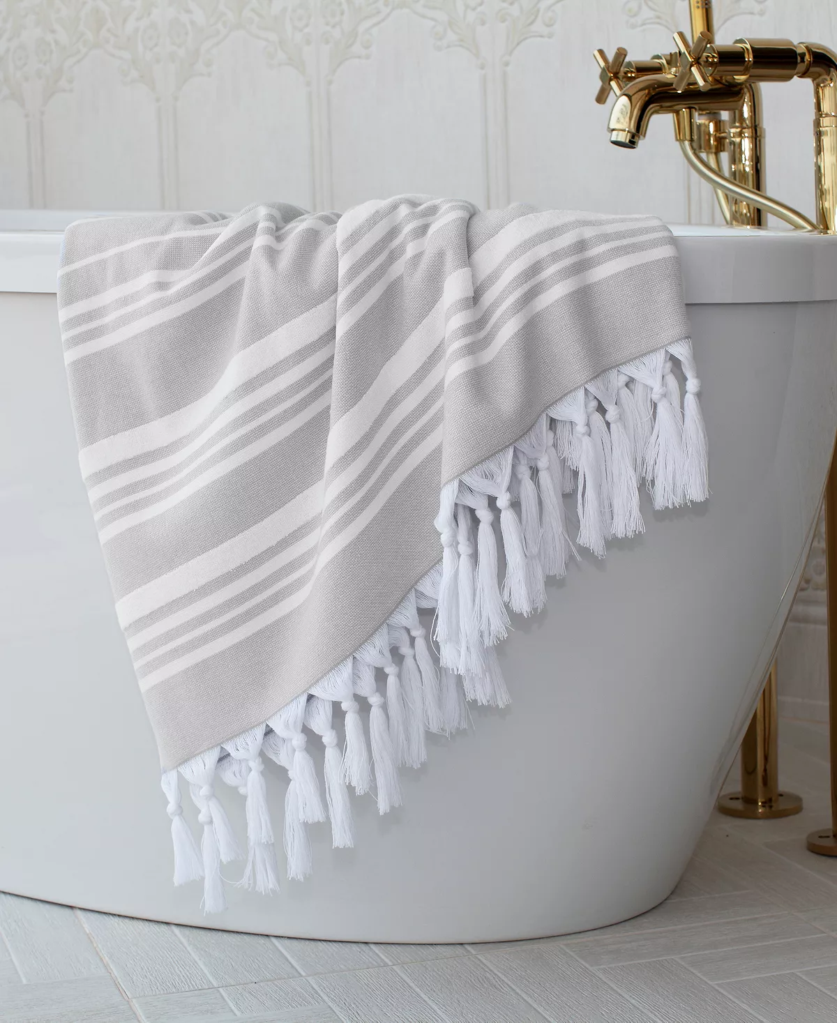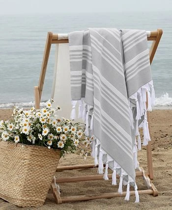 This trendy and elegant terry pestemal towel is offered in both a sophisticated stripe as well as an elegant polka dot pattern. The classic terry towel texture is brought to life in this pestemal towel designed with a combination of absorbent terry cloth on one side and soft cotton on the other.