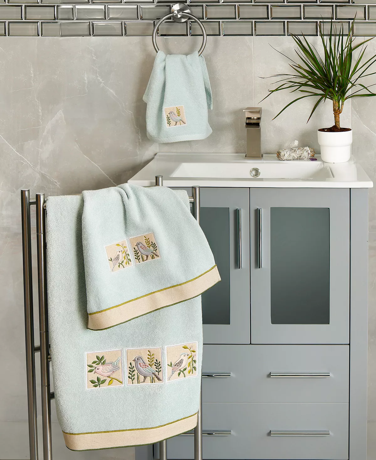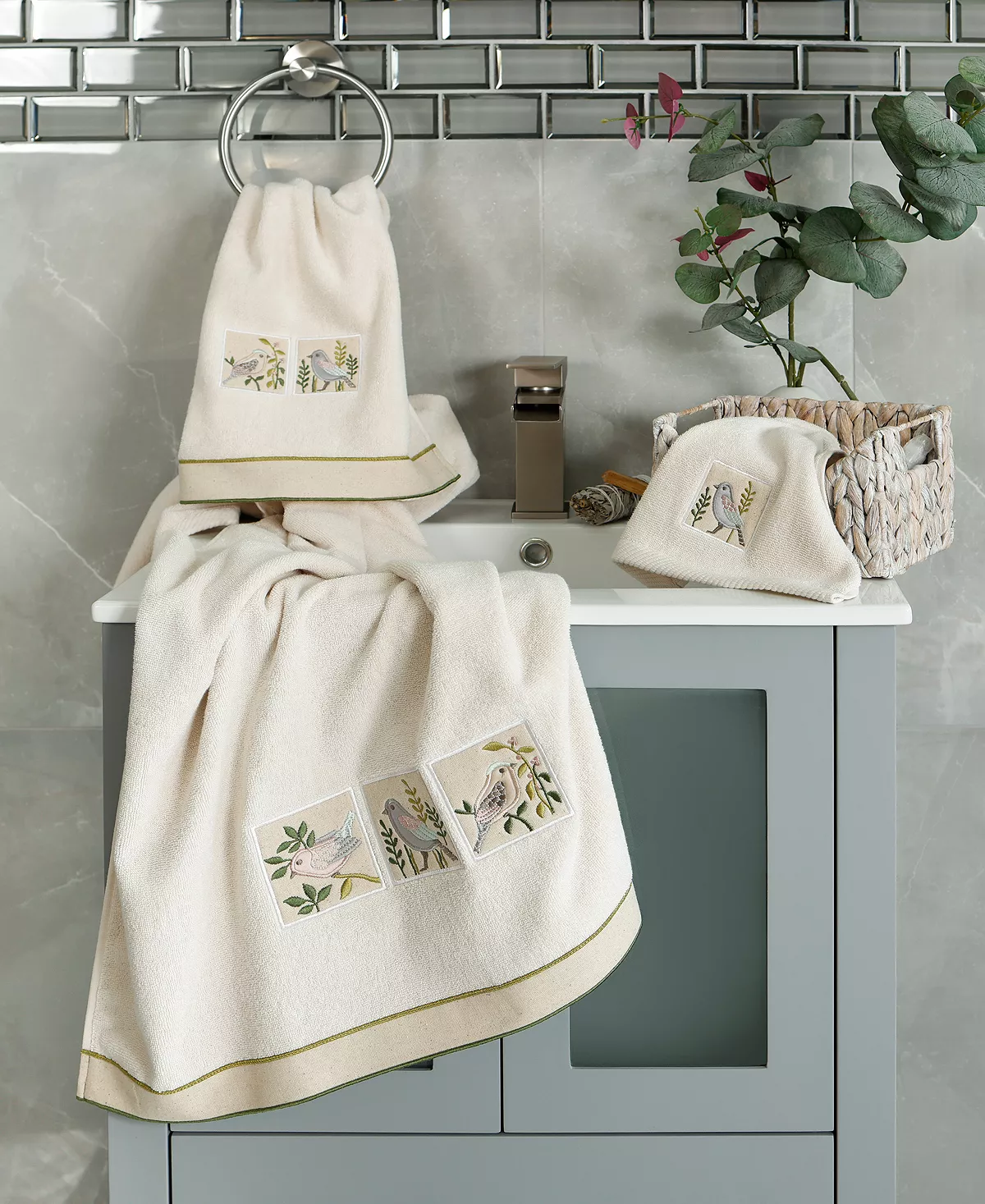 The BELINDA towels feature charming applique birds and are trimmed with a muslin border. Cloud soft and absorbent, these luxurious, durable towels keep their plush appearance after washing. The BELINDA towel collection brings a country spirit and richness to your home decor and makes a great gift.