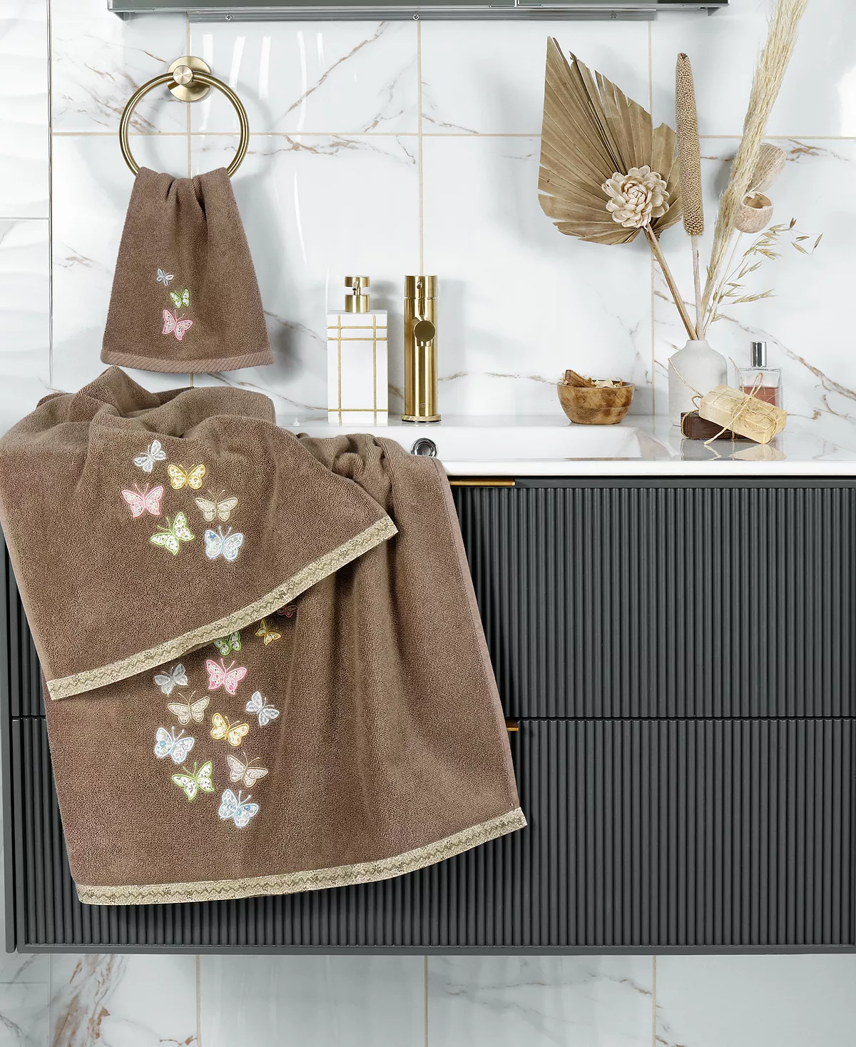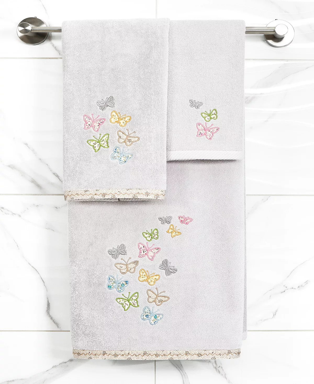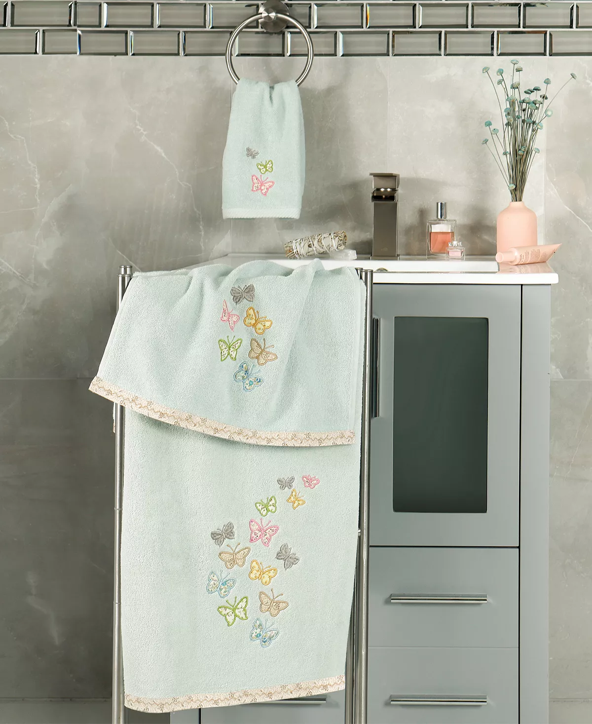 The MARIPOSA towels feature calico applique butterflies and are trimmed with a calico border. Cloud soft and absorbent, these luxurious, durable towels keep their plush appearance after washing. This towel collection brings a cottage spirit and richness to your home decor and makes a great gift.