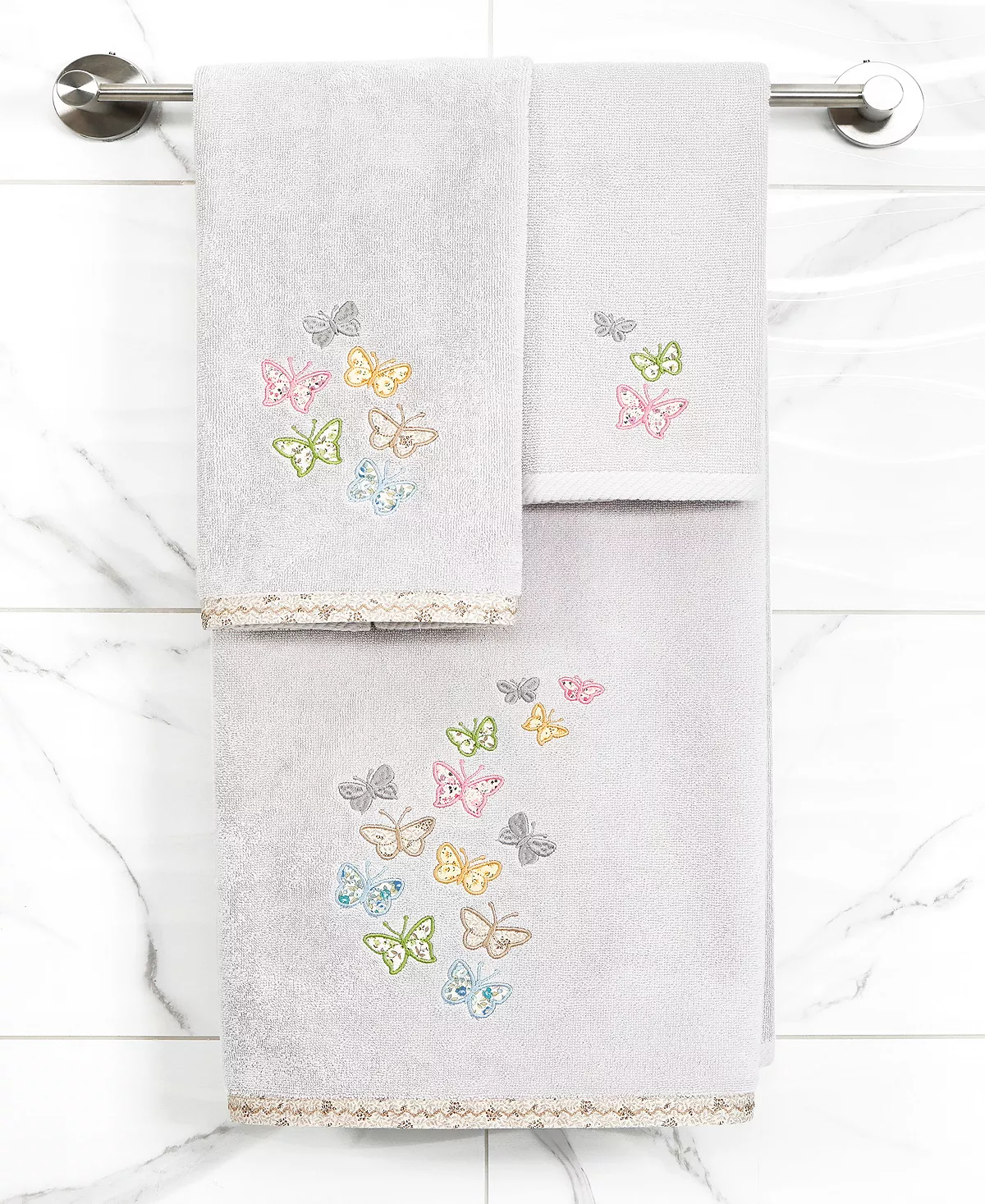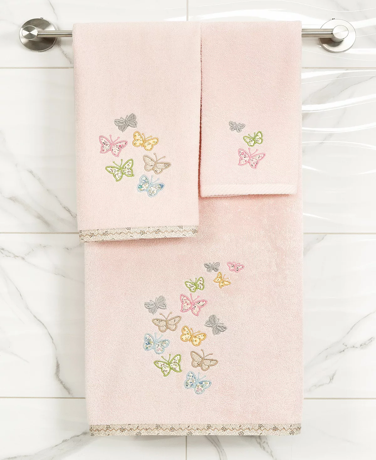 The MARIPOSA towels feature calico applique butterflies and are trimmed with a calico border. Cloud soft and absorbent, these luxurious, durable towels keep their plush appearance after washing. This towel collection brings a cottage spirit and richness to your home decor and makes a great gift.