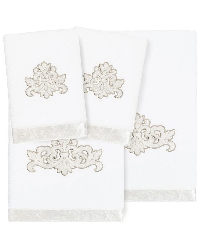 The MAY towels feature a classic velvet crest applique and are trimmed with the same lustrous velvet border. Cloud soft and super absorbent, these luxurious, durable towels keep their plush appearance after washing. The MAY towel collection brings a refined spirit and richness to your home decor.