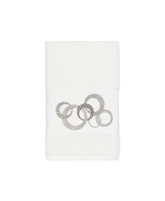 The Annabelle Embellished Towel Collection features a whimsical circle motif with metallic accents on a textured woven border. These soft and luxurious towels are made of premium Turkish Cotton and offer lasting absorbency and superior durability. These lavish Turkish cotton towels are produced in Linum’s state-of-the-art vertically integrated green factory in Turkey, which runs on solar energy.