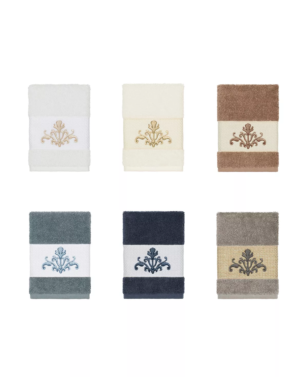 The Scarlet Embellished Towel Collection features an elegant scrolling crest motif on a textured woven border. These soft and luxurious towels are made of premium Turkish Cotton and offer lasting absorbency and superior durability. These lavish Turkish cotton towels are produced in Linum’s state-of-the-art vertically integrated green factory in Turkey, which runs on solar energy.