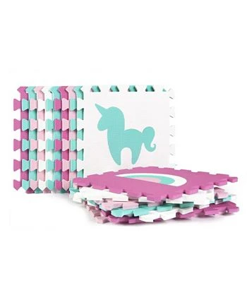 Using soft, playful foam, Tadpoles Unicorn Play mat Set provides a fun, safe environment for your little one. Made of large, interlocking foam pieces with removable shaped centers, the mats create a soft base for your child and add a great look to any room. Includes 16 foam frame pieces, shaped center pieces and 16 border pieces.